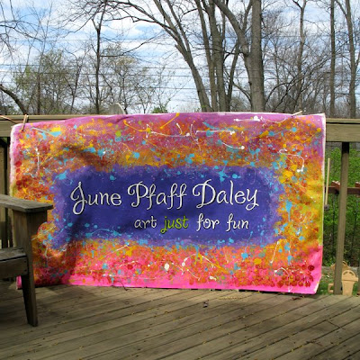 I’ve had my eye out for fabric for my upcoming art show table for awhile now. Nothing uglier than your standard 2′ x 6′ white plastic hotel table…yeah, that baby must be covered. Yesterday on a thrift shop pop-in, I rooted through the fabric/bedding section to find 4 yards of the above for the bargain price of $2 (total). I questioned its busy-ness, but decided that the shade of purple perfectly matched my color scheme. This certainly isn’t bed-in-a-bag matchy that I’m going for with this and this and now THIS, but it’s all working and “matching” in my colorful, patterned world. I also loved that the funky paisley had a nice sense of movement, and was a non-wrinkly-silky kind of fabric that would look pretty good pulled out of a box if an iron couldn’t be located, and ~LOVE~ that it was $2.