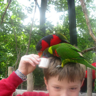 If you ask me, this is right up there with “Don’t run with scissors.” Talk about living dangerously. I was home working while the kids enjoyed lorikeets eating on their heads. I’m making a mental note to continue to send the camera out with the eldest on all Dad outings.