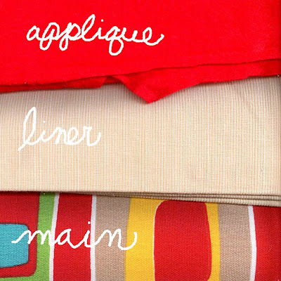 fabric swatches (click here for Ruby Jane’s shop)fusible web21″ x 29″ piece of heavier fabric (main body of dishtowel)trimscissorssewing machinecoordinating thread
