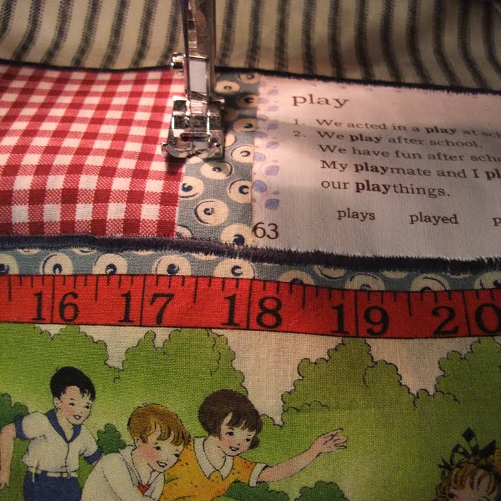 Finally, attach red trim on top…reminiscent of the fancy borders from the original children’s dictionary (note the right edge of the “play” definition fabric snippet.)