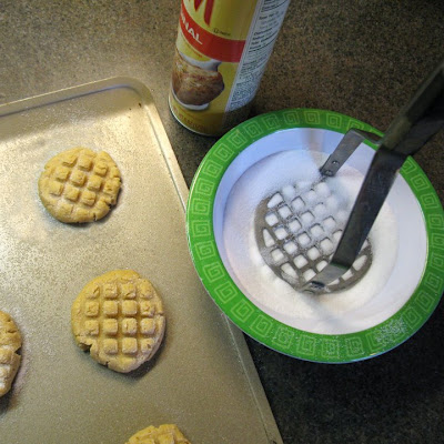shhhhhhh….my secret is to use a potato masher instead of a fork for the patterned tops. I experimented with other kitchen utensils way back here to make cookies that looked like these, but the potato masher is still my all time favorite.