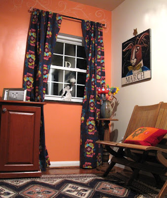 For the triangles, I used three solids (found at yard sales for pennies) and then sprinkled in my more cherished prints. I powered up my sewing machine and had fun sewing triangles with funky multi-colored thread and zigzag stitches. Nothing too serious…this garland was all about having a good time. Next, I laid out a pattern of sewn triangles (yes, there is a pattern, but heck no, it’s not obvious.) After rummaging through my rick rack box, I found yellow bias tape perfect to string the flags together. (disclaimer: my rick rack box filled with vintage bias tapes, trims, etc. does not exist due to years of sewing. I picked it all up at a yard sale years ago before I sewed anything more than buttons. I knew it was a jackpot for $1, even though I had no idea what to do with the stuff. Self pat on the back…glad I didn’t pass that find by.)